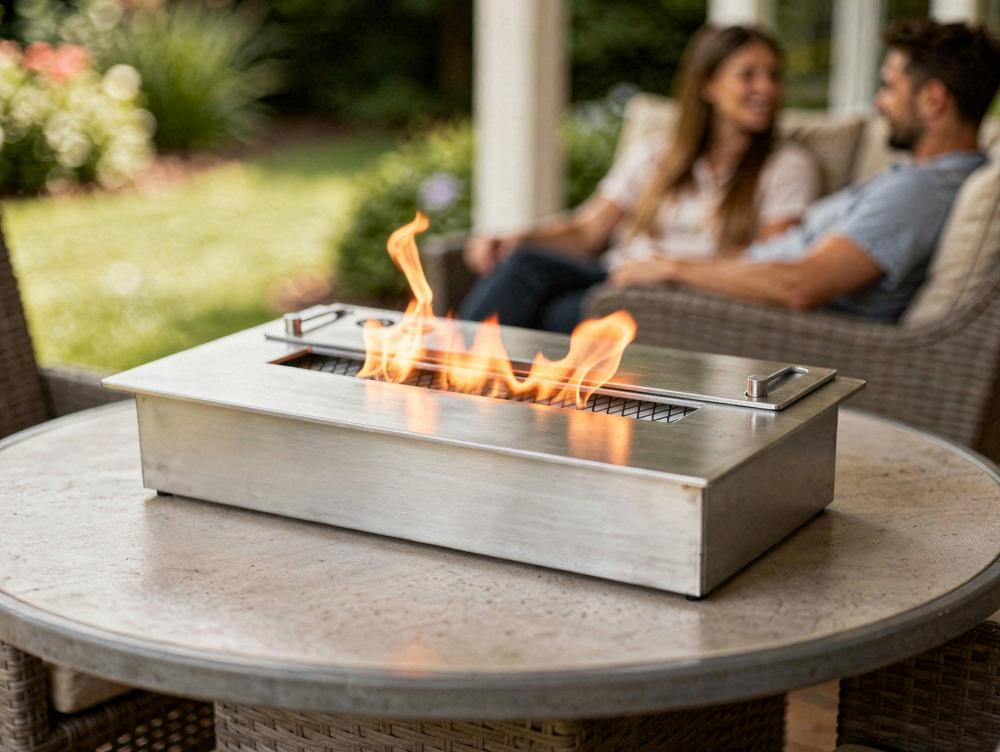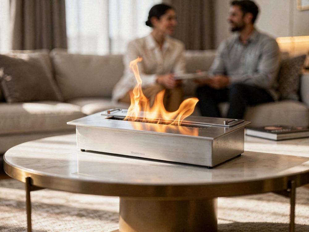 NB10 ist ein Verbrennungsblock im Format (LxPxH: 30x13x6 cm) und leicht (4kg), der mit einer doppelten Edelstahlschicht und Keramikfasern im Inneren hergestellt wird, um ein sicheres Feuer zu gewährleisten. Mit vollem Tank haben Sie eine Autonomie von bis zu 4 Stunden. Die Öffnung des Deckels ermöglicht es, die Intensität der Flammen zu regulieren, so dass Sie die Atmosphäre nach Ihren Wünschen anpassen können, und wenn Sie das Feuer stoppen möchten, können Sie das Abschaltwerkzeug verwenden.