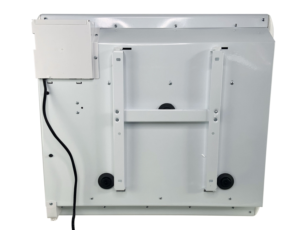 O seu design rectangular branco é elegante e compacto, e inclui tudo o que é necessário para a instalação na parede. O seu tamanho (CxPxA: 90 x 10 x 10 x 55 cm) e solidez (19,5kg) permitir-lhe-ão deslocá-lo de acordo com as suas necessidades, sendo ideal para divisões até 25m2.