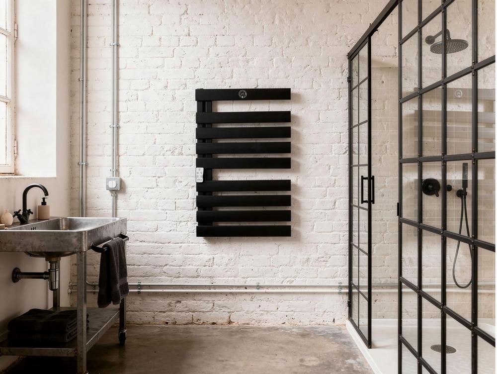 Radiador toalheiro 425 W com design preto e controlo WIFI