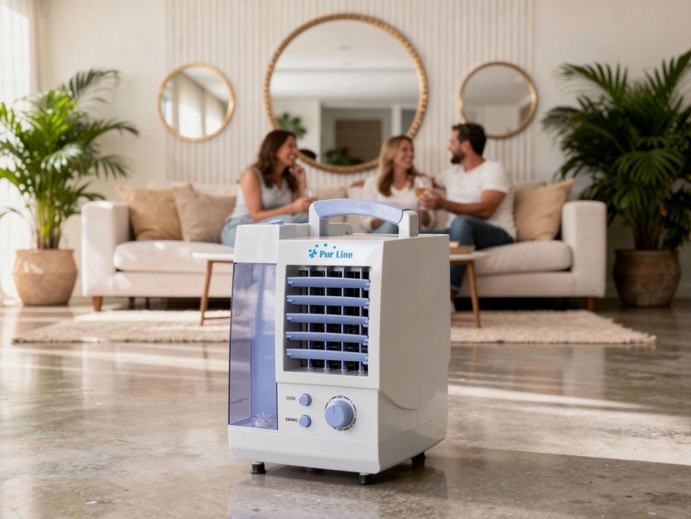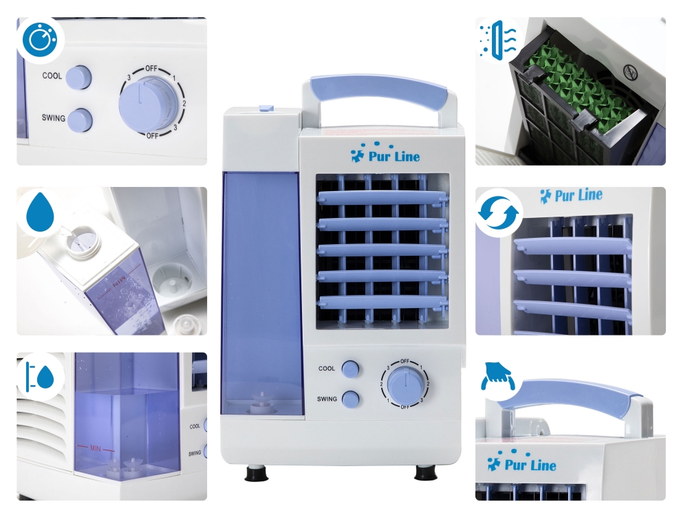 Já pensou alguma vez num sistema de ar condicionado acessível, simples e confortável para a sua casa?Esta Purline evaporativa é a solução para sobreviver ao calor, porque funciona graças a uma tecnologia de refrigeração avançada e silenciosa que retira água do seu tanque (1L) e graças ao seu painel de celulose arrefece-a e expulsa-a, arrefecendo rapidamente o ambiente sem compressores ou refrigerantes químicos, totalmente ecológica e boa para a sua saúde.
