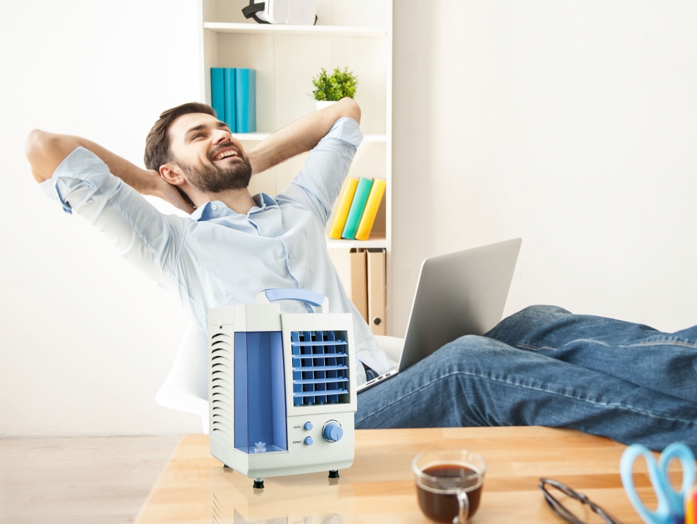 Um refrigerador evaporativo de mesa muito mais potente do que a concorrência