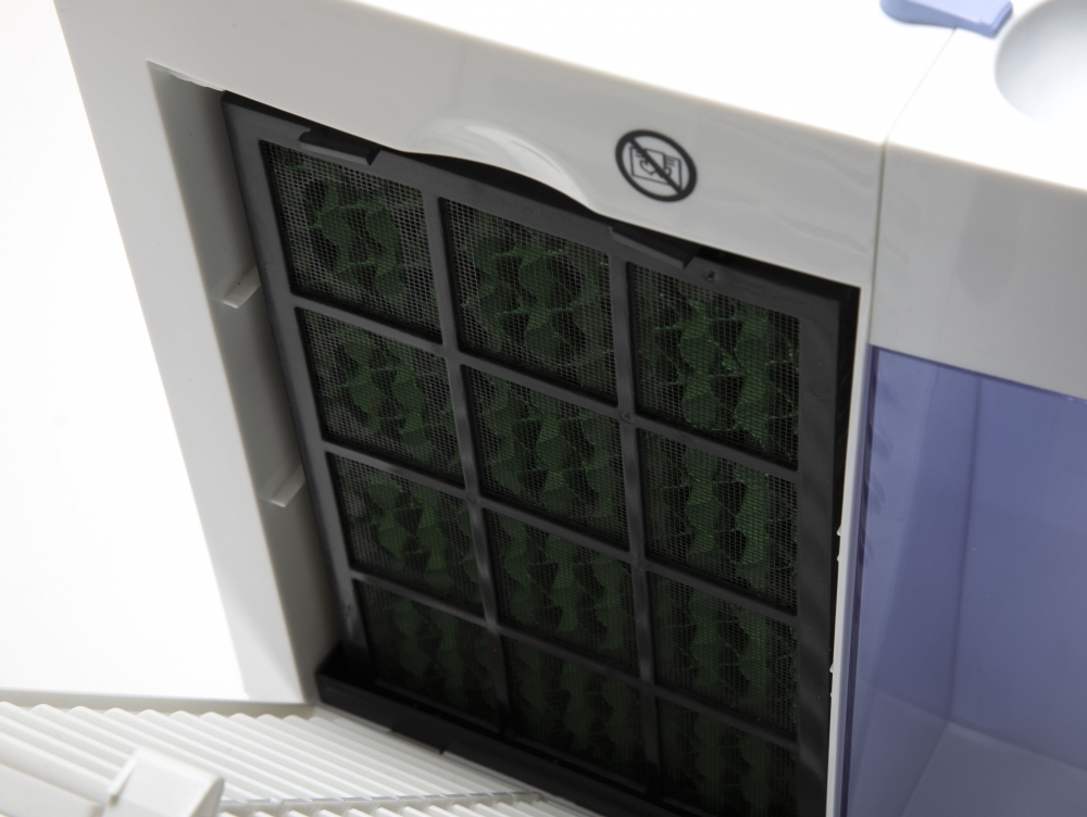 Com um desenho compacto terminado em branco e azul, o seu tamanho (CxLxA: 20 x 23 x 30 cm) e peso (3kg) tornam-no ideal para divisões até 12m2 e graças às suas rodas e pega de transporte pode deslocá-lo de acordo com as suas próprias necessidades.