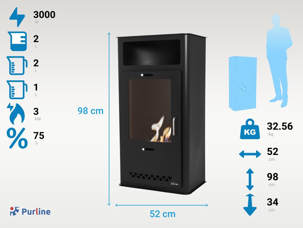 Chamas reais, sensa??o de calor quase imediata. Limpa, sem fumos nem cinzas e de f?cil manuten??o.