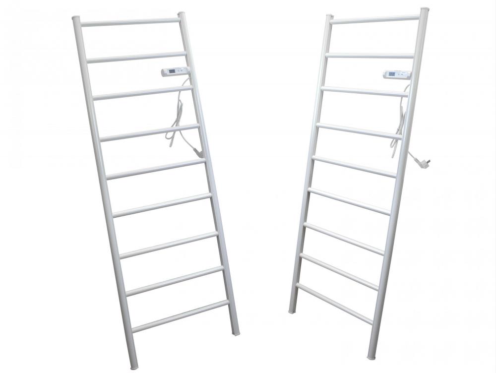Toalheiro eléctrico alto em forma de escada. Visor LED com temperatura ambiente. Função de secagem da toalha 2 horas.