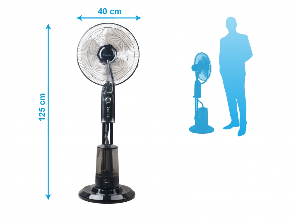 A MISTY 1 tem 3 velocidades, temporizador, um indicador luminoso de depósito vazio e oferece a possibilidade de ajustar o volume do pulverizador. Além disso, o movimento oscilante das suas lâminas favorece uma óptima distribuição do ar.