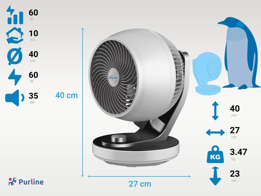 Os ventiladores são a forma mais simples, conveniente e económica de combater o calor, e a gama Purline é uma das mais completas. Este fantástico ventilador VENTY TA 60 foi concebido para uso doméstico e funciona ligado à rede, a sua tecnologia super silenciosa e consumo optimizado oferece uma potência de 60W e as suas 3 lâminas proporcionam um ambiente rapidamente fresco e agradável.