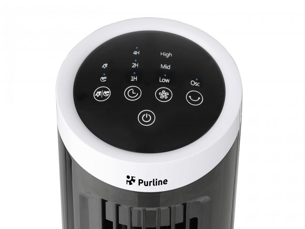 Ventoinha de torre de secretária Controlo eletrónico. 20W. Painel tátil. Design compacto 3 velocidades Oscilação automática. Temporizador.
