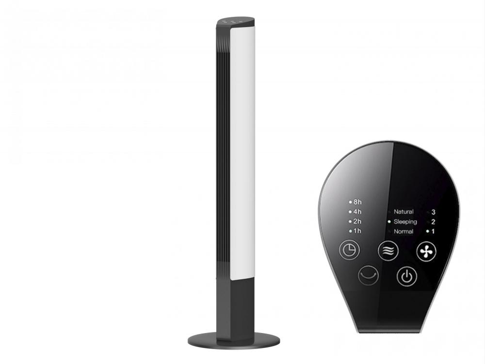 Caracteriza-se porque não tem pás, pelo que o seu funcionamento é totalmente silencioso. Tem um painel de controle tátil com 3 velocidades, 3 modos de funcionamento temporizador (15h) e oscilação horizontal automática. Este ventilador moderno é de baixo consumo e inclui controle remoto.