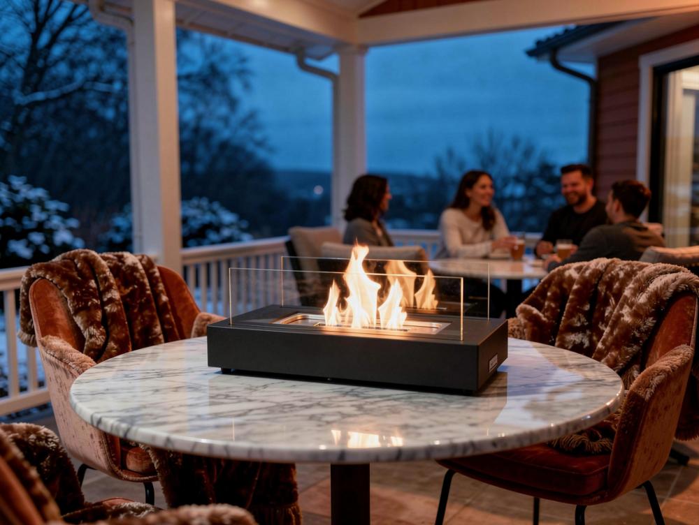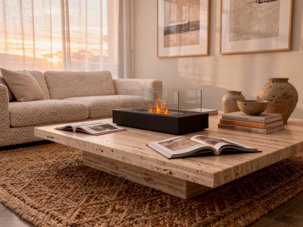 Lareira de mesa a etanol com dois lustres de vidro temperado