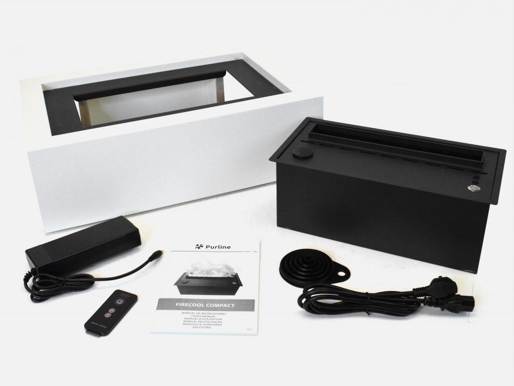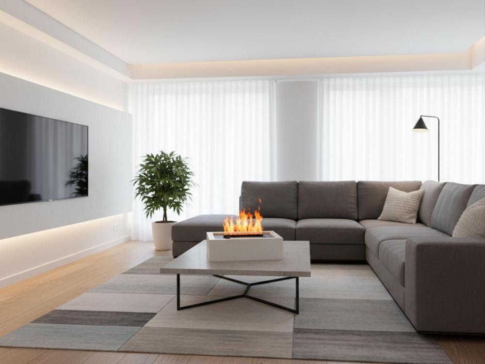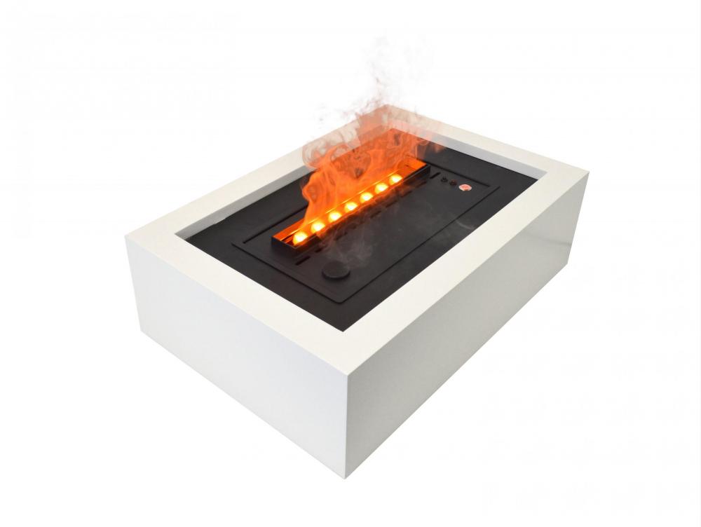 A FIRECOOL TABLE W é uma lareira decorativa de mesa de chama simulada com suporte em MDF, concebida para oferecer uma experiência visual envolvente num formato prático e elegante. Graças à sua tecnologia de vapor de água, gera uma imitação hiper-realista do fogo, suave e natural, sem emitir fumo nem gases tóxicos ou poluentes